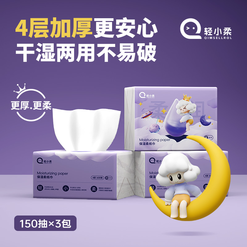 旗舰店轻小柔4层加厚保湿柔纸600张新生儿超柔纸干湿婴儿乳霜柔纸巾