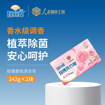 自营扇牌玫瑰洗衣皂242g*2块香水级调香植萃除菌去污沙龙香氛棕榈仁油肥皂