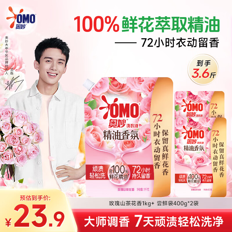 旗舰店奥妙大师香氛洗衣液玫瑰72小时持久留香快洗速净植护洗衣液补充装 精油玫瑰山茶花袋装【3.6斤】