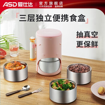 旗舰店爱仕达保温饭盒带餐具 3层独立抽真空 2.2升大容量上班族便携保温饭盒 2.2L 浪漫粉