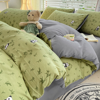 途波列A类小竺棉提花四件套亲肤轻柔被套床单套件 翠竹熊猫-NN 1.8m床单款(被套200*230cm)
