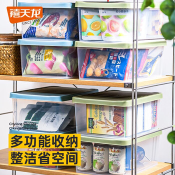 旗舰店禧天龙(Citylong)杂物收纳盒化妆品收纳盒子学生宿舍桌面塑料储物盒带盖厨房整理箱 石青盖透明盒大号3个装
