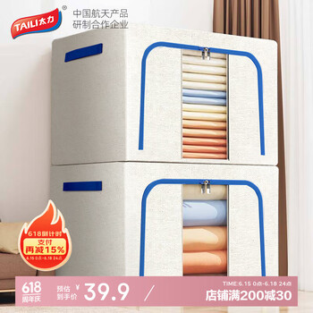 旗舰店太力收纳箱衣服棉被布艺整理箱储物百纳箱一个装【牛津布收纳箱】66L 海鸥灰 50*40*33cm 【66L】1个装