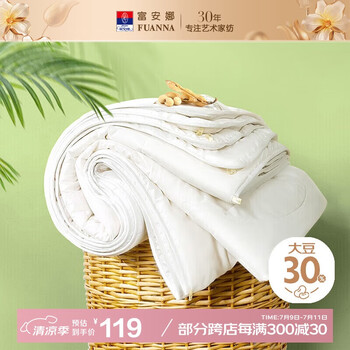 自营富安娜舒暖 30%大豆纤维被子 抑菌空调被 单人 2.5斤 152*210cm 白