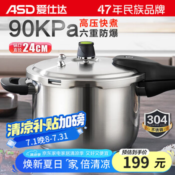 自营爱仕达ASD 高压锅304不锈钢六保险6.5L压力锅燃气电磁通用WG1824DN