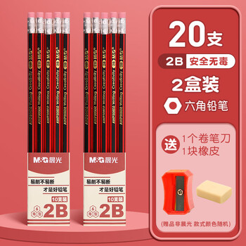 旗舰店晨光(M&G)铅笔小学生专用无毒2b铅笔素描笔一二年级幼儿园儿童初学者铅笔练字专用笔带橡皮绘图考试用 20支/2B+卷笔刀+橡皮