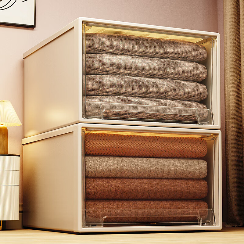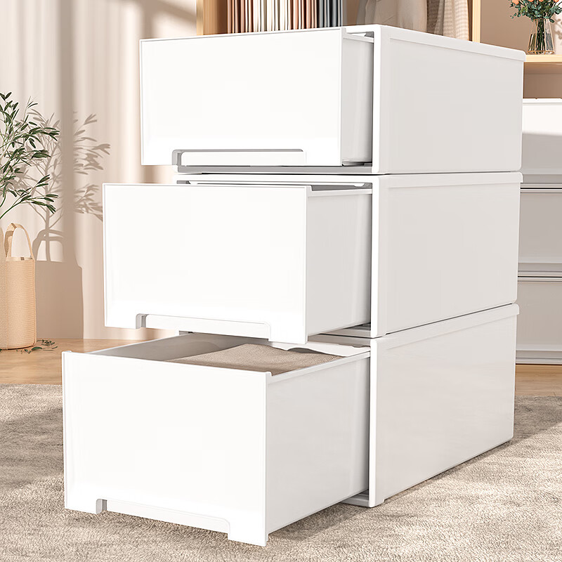 旗舰店稻草熊收纳箱抽屉式收纳盒塑料透明家用衣物储物整理箱加深衣柜收纳柜子 深27.3宽18.3高10 【纯白】一个装