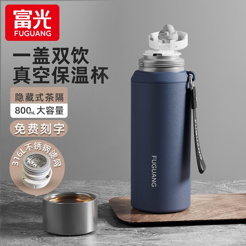 旗舰店富光保温杯大容量男女泡茶壶焖茶杯316不锈钢学生户外便携商务水杯子 墨蓝【316L不锈钢】800ml