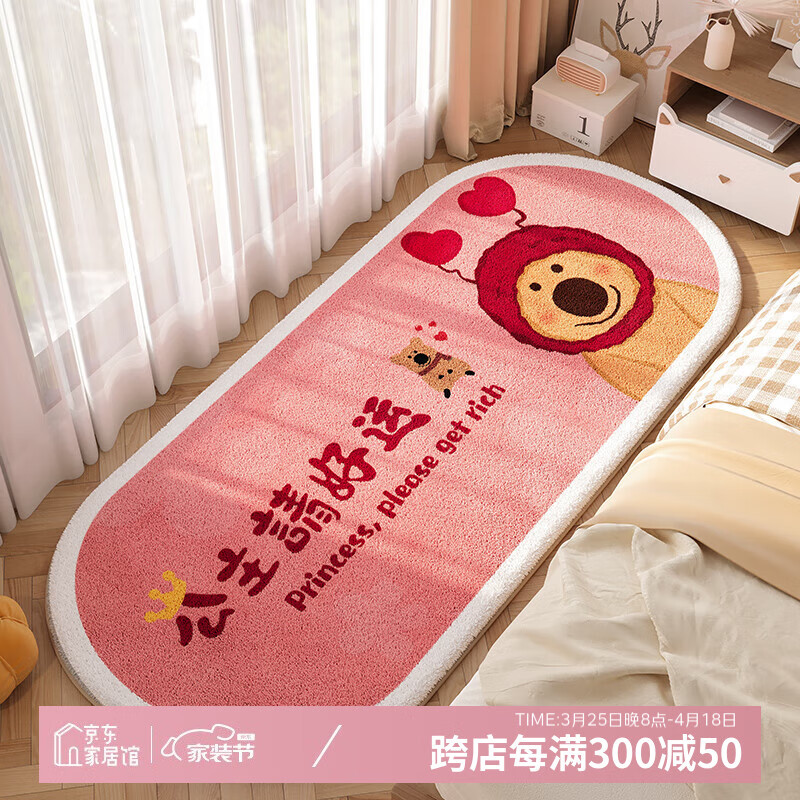 旗舰店KAYE卡通床边毯仿羊绒女孩衣帽间客厅书房沙发飘窗垫子加厚卧室床前毯 FYR-公主请好运 50x140cm