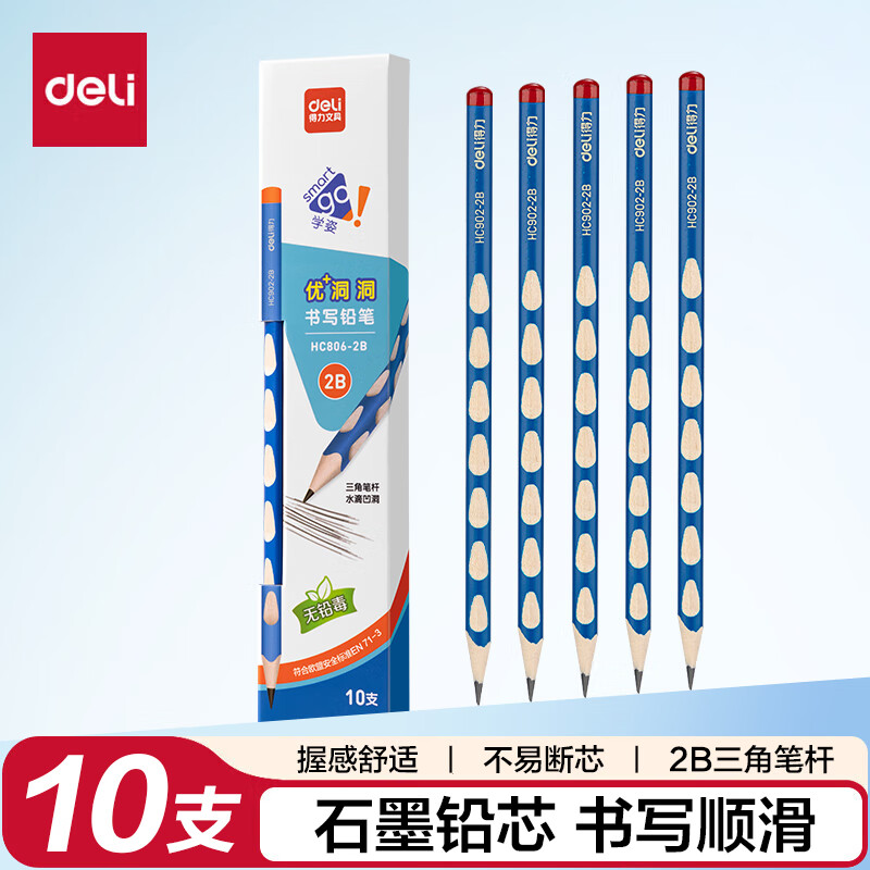 得力(deli)定制刻字洞洞铅笔新小学生专用新一年级三角洞洞笔幼儿园二年级考试儿童矫姿粗大铅笔刻名字 【常规】蓝色杆2B-10支