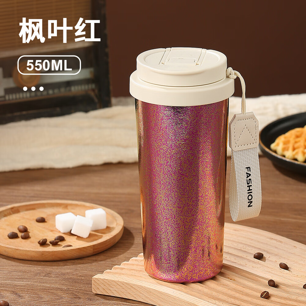 旗舰店麦卡伦纯钛保温杯咖啡吸管杯子高颜值水杯生日礼物送对象(新款特价) 枫叶红550ml
