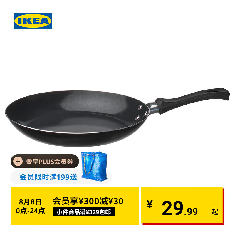 旗舰店宜家(IKEA)TAGGHAJ塔格哈伊煎锅平底锅不粘涂层家用 黑色煎锅不粘涂层24cm