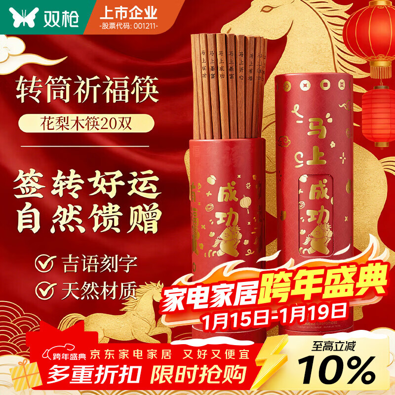 自营双枪花梨木好运筷 家用高档礼盒木筷子 家庭筷防滑不易发霉20双