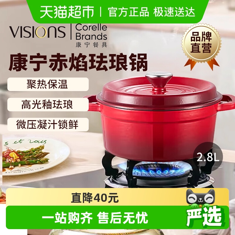 康宁VISIONS珐琅锅2.8L炖锅炖盅铸铁锅汤锅原装