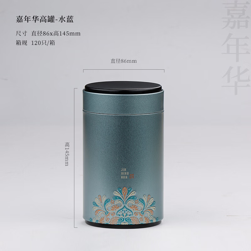 密封茶叶罐二两半斤装茶叶罐铁罐通用红茶绿茶小罐茶茶 嘉年华高罐浅蓝色