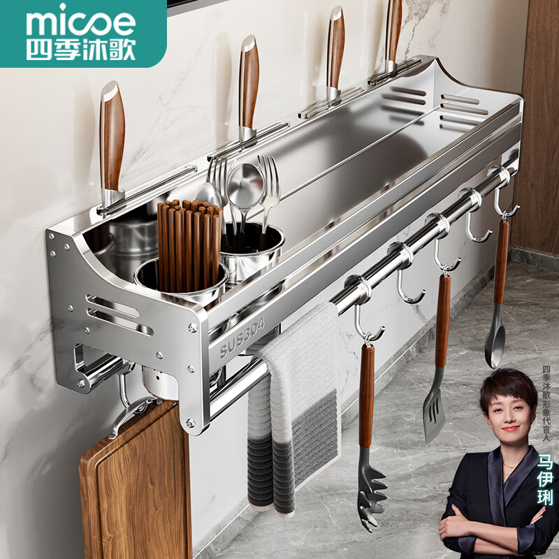自营四季沐歌304不锈钢厨房置物架壁挂刀架锅盖调料收纳架筷子筒厨房用具大全