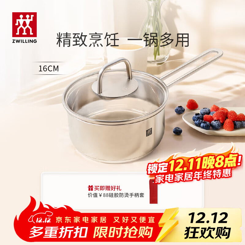 旗舰店双立人(ZWILLING)不锈钢奶锅小汤锅婴儿辅食锅16cm热奶锅小蒸锅电磁炉小锅泡面锅 奶锅 16cm