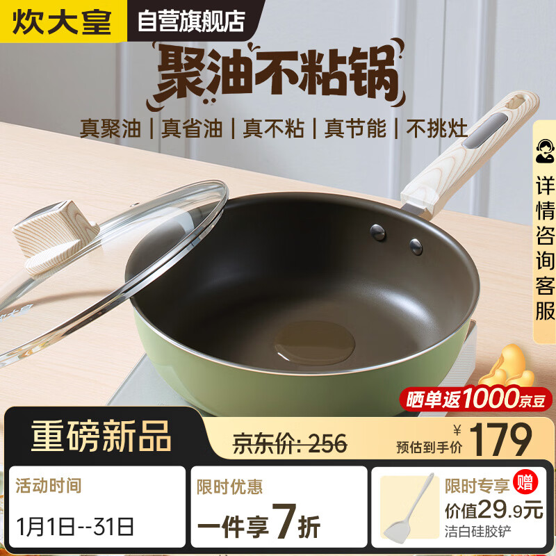 旗舰店炊大皇炒锅不粘锅聚油不凸底炒菜锅家用不跑油平底不沾锅Y 【适合1-2人用】聚油不粘 26cm