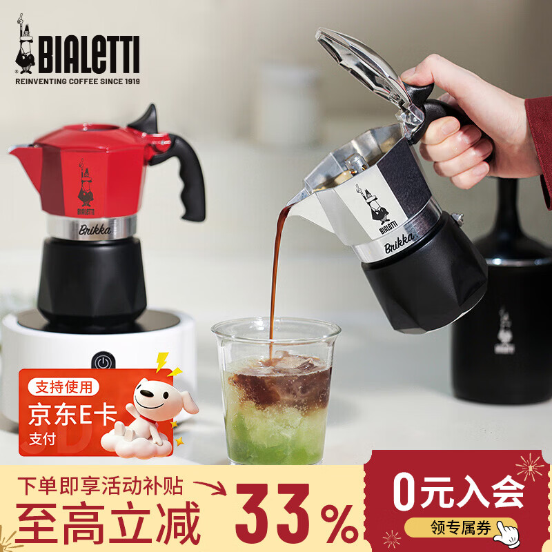 旗舰店比乐蒂双阀摩卡壶意式美式咖啡机户外便携高压手冲咖啡壶新年礼物 2杯份 经典色 双阀