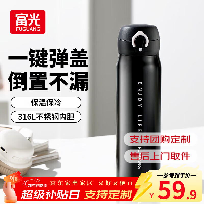 旗舰店富光保温杯大容量女水杯学生316不锈钢便携喝水杯子中秋节生日礼物 商务黑【316不锈钢内胆】600ml