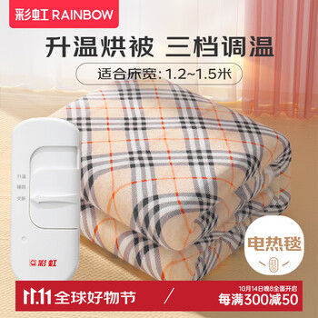 旗舰店彩虹(RAINBOW) 电热毯双人调温型1.5*1.2米电褥子双人家用高温自动断电