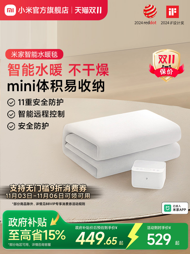 旗舰店小米官方旗舰店米家智能水暖毯小米手机远程控制电热毯加厚双人