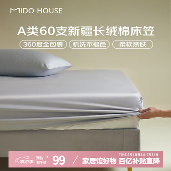 自营MIDO HOUSE铭都60支床笠单件纯棉床笠罩防滑全包保护套月影灰180*200+30cm
