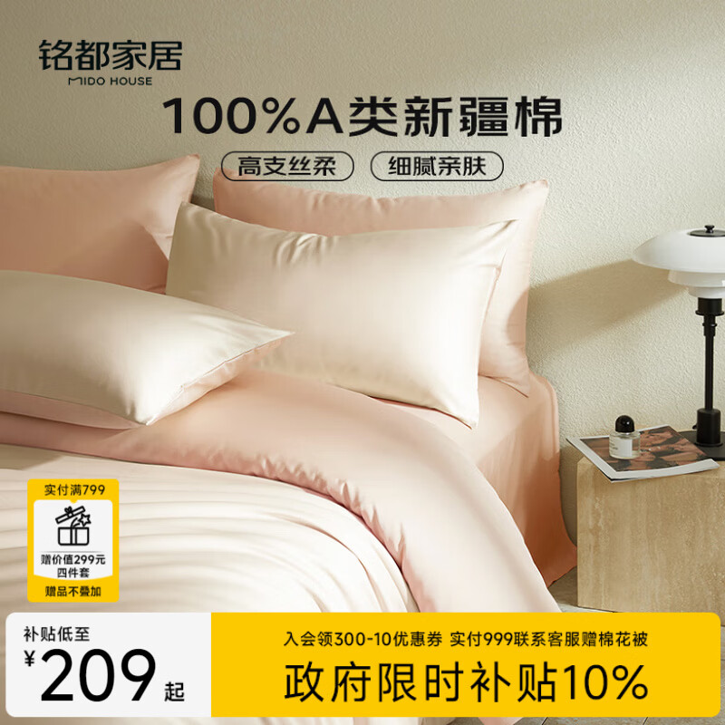 自营MIDO HOUSE铭都60支纯棉四件套全棉床上用品A类贡缎高端轻奢高级感床单被套200x230cm云霜白