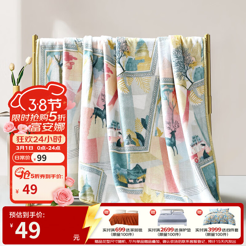 旗舰店富安娜家纺 双层云毯毛毯结婚喜庆大红色毯子加厚加大双人毯婚庆用 法兰绒毯【城市印记】 【150*200cm】