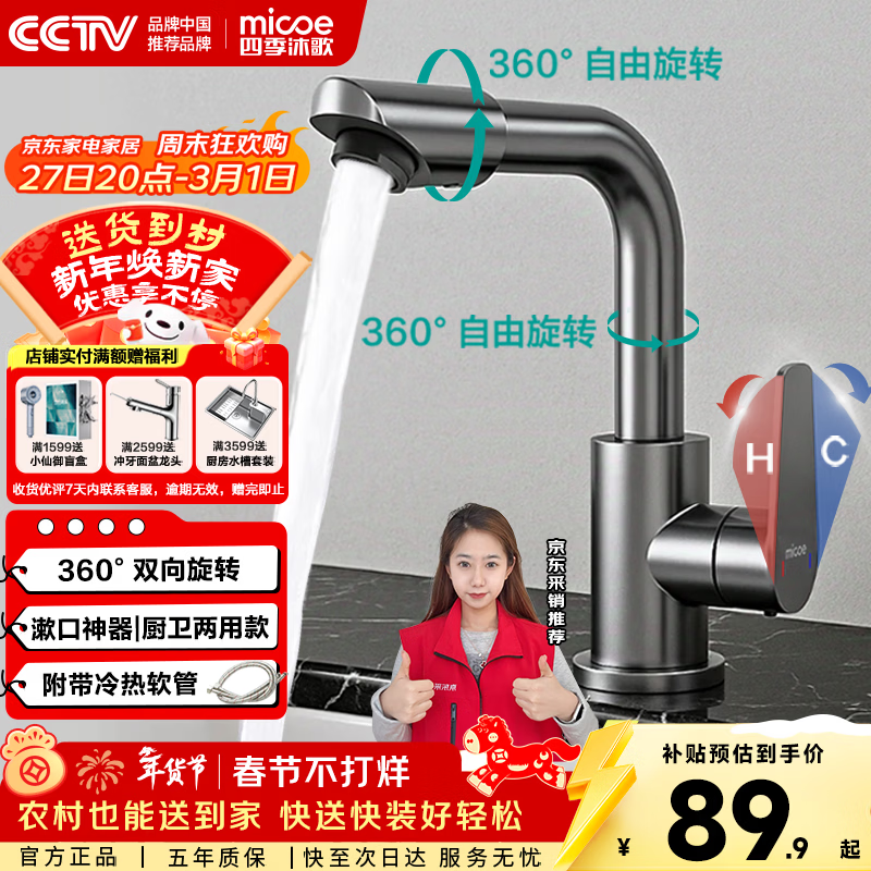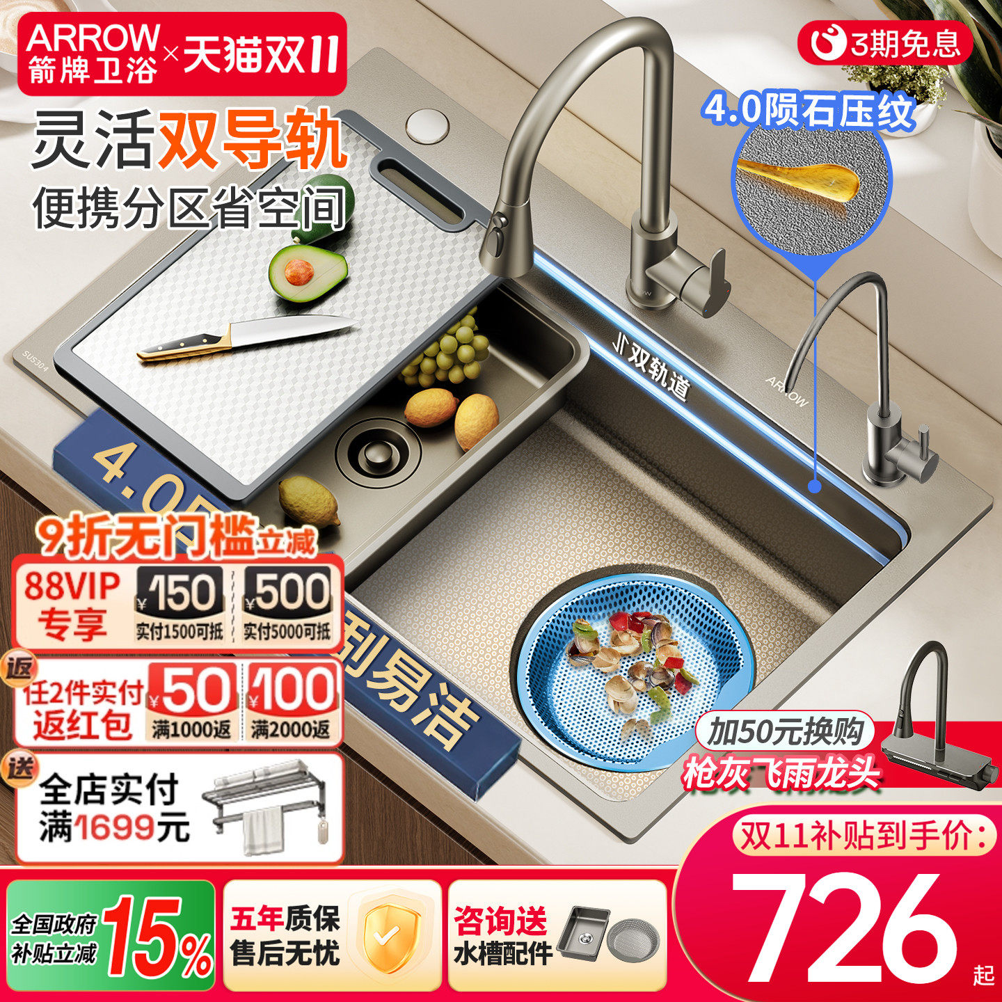 自营京东京造加厚304不锈钢米粒纹纳米水槽厨房大单槽洗菜盆68*46含龙头