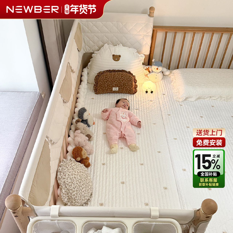 旗舰店newber婴儿拼接床儿童加宽实木床边床宝宝延宽神器大人可睡