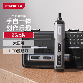 自营得力电动螺丝刀充电式家用小型迷你电动螺丝起子带25批头套装