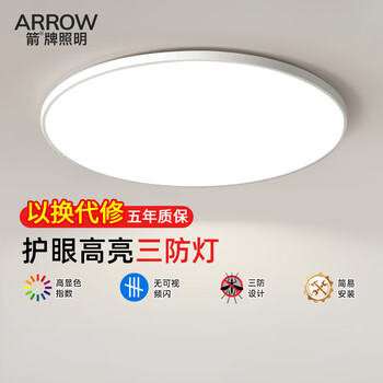 旗舰店ARROW箭牌照明 led超薄三防灯吸顶灯卧室灯阳台过道走廊灯中山灯具 【推荐】36W白光37cm适12平内
