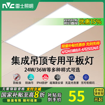 旗舰店雷士照明厨房灯扣板灯300x600平板吸顶灯卫生间面板扣板灯集成吊顶灯 24瓦珍珠白框-正白光