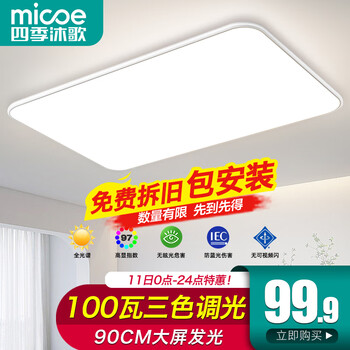 旗舰店四季沐歌全光谱客厅大灯简约吸顶灯饰餐厅卧室全屋三室两厅灯具套餐中山 【全光谱】100瓦三色调光90CM