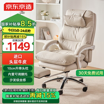 自营京东京造Z8老板椅真皮椅躺椅 人体工学椅办公椅子电脑椅 头层牛皮 奶咖白
