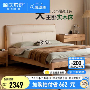 旗舰店源氏木语精选实木软靠床现代简约高靠背主卧大气双人床北欧原木风小户型床 橡木有机皮乳白色软靠床1.5*2m不含垫