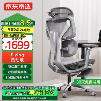 自营京东京造Flying灵动版人体工学椅电竞椅办公椅子电脑椅人工力学座椅 灰