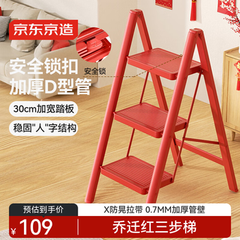 自营京东京造梯子家用三步折叠梯子乔迁红色室内多功能爬梯加厚伸缩人字梯