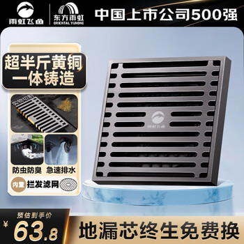 自营雨虹飞鱼东方雨虹全铜地漏枪灰防反水防臭地漏卫生间大排量下水道淋浴地漏