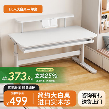 百亿补贴多彩鱼儿童学习桌椅书桌椅套装课桌中小学生家用实木写字大白桌椅可升降 1.0M实木单桌-手摇升降