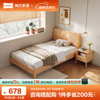 自营林氏家居原林氏木业床双人床原木风北欧风主卧室家用单人床1.2米OU2A