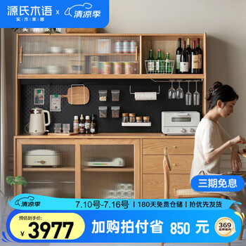 自营源氏木语北欧实木餐边柜一体高柜家用现代简约储物柜橡木茶水柜