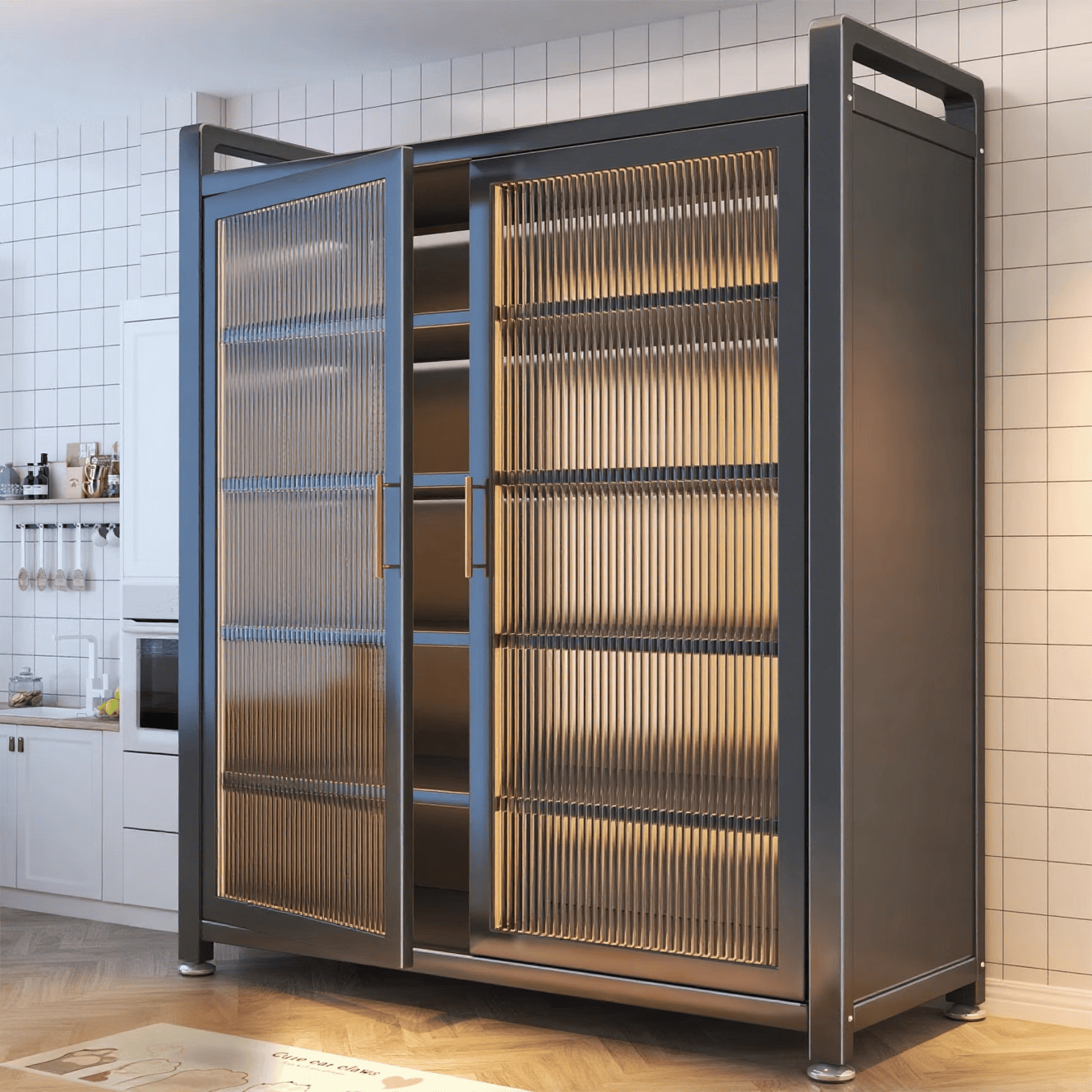 自营摩霄餐边柜一体靠墙厨房橱柜储物收纳碗柜多功能带门置物架子三层灰60