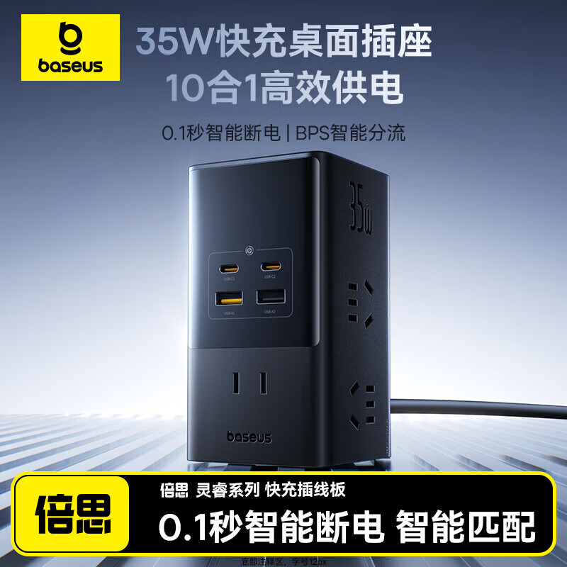 自营倍思立式插排35W快充氮化镓插座桌面充电站/智能充电/多功能充电器/桌面插座