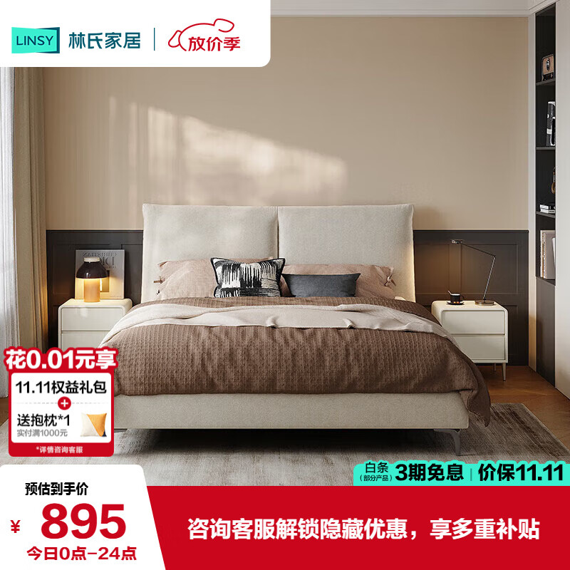 自营林氏家居现代简约猫抓布艺床主卧大床软包互不打扰双人床BC836 1.8*2.0米