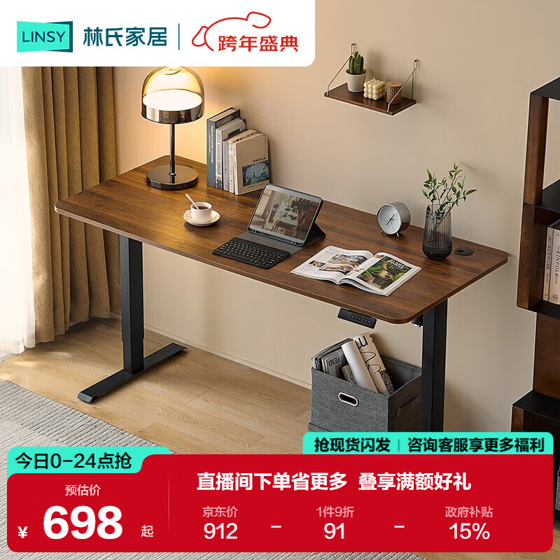 自营林氏家居自动电动升降桌腿书桌电脑桌家用学习桌子工作台BG047