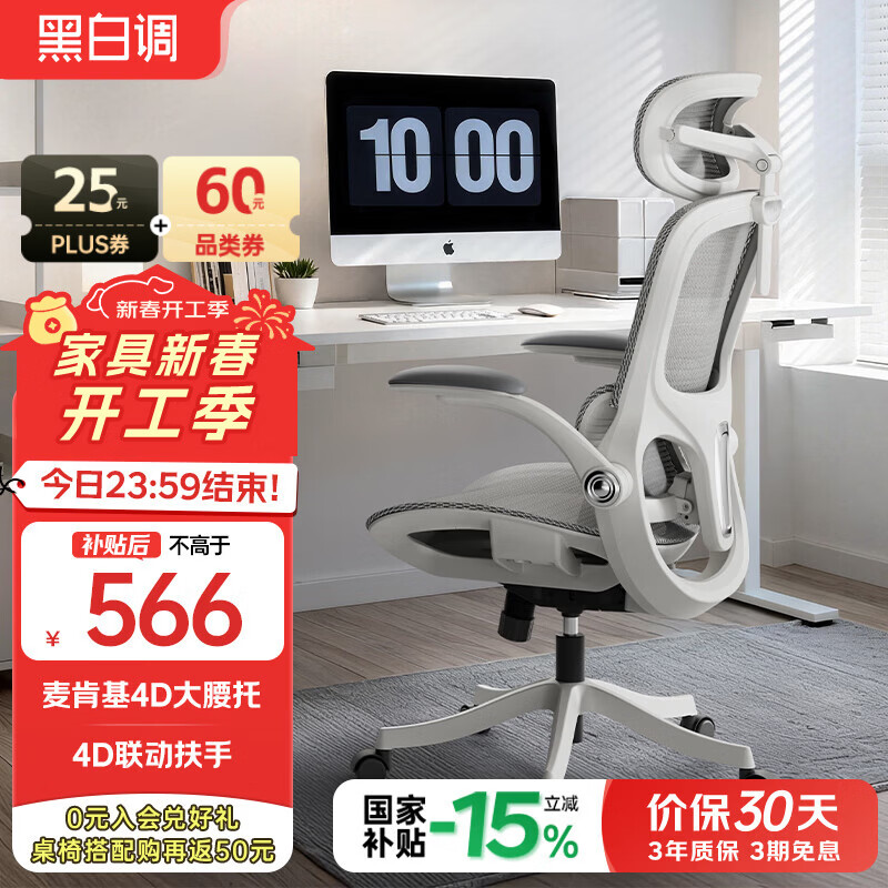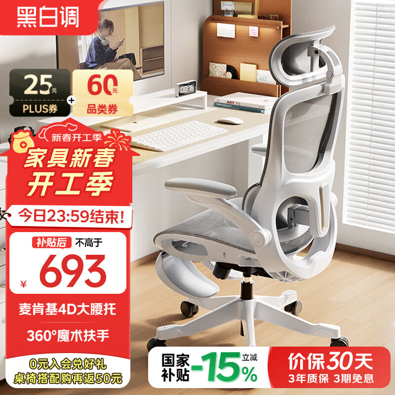 自营黑白调P2 Pro二代人体工学椅电脑椅办公椅电竞椅子人工力学座椅4D腰托