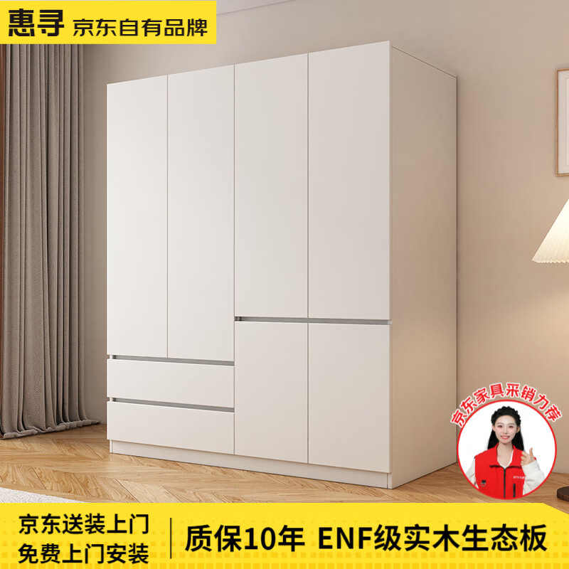 惠寻京东自有品牌分段式免拉手实木衣柜大容量储物衣橱包安装卧室大衣 【五门】2米主柜+顶柜
