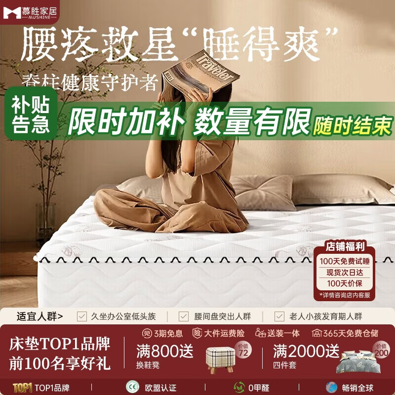 自营慕胜弹簧床垫席梦思1.8米天然乳胶椰棕20cm厚十大品牌1.8x2米适中偏硬